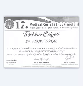 • Medikal –Cerrahi Endokrinoloji Mezuniyet Sonrasi Egitim Kursu 2010 Aralık , Antalya