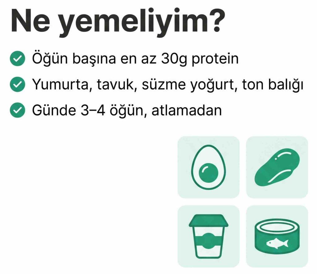 Mounjaro ile takip ettiğim hastalarda en büyük hatanın, ilaçla gelen iştah azalmasını doğrudan benimsemek — yani “zaten yiyemiyorum, bu da diyet” demek — olduğunu görüyorum. Oysa bu yaklaşım kasları sessizce eritiyor. Protein alımını özellikle planlamak gerekiyor; tesadüfe bırakmak işe yaramıyor.